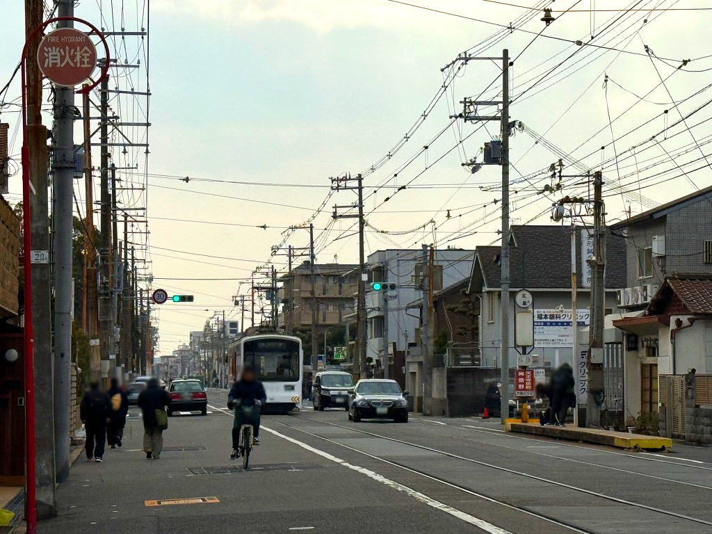 目的の駅に降りると、いきなり車道であった。停留所のある道幅はすごく狭くて、浮島みたいだ。わたしはいきなり車に轢かれそうになり、家族に服を掴まれた。なるほどと思った。路面電車だ。